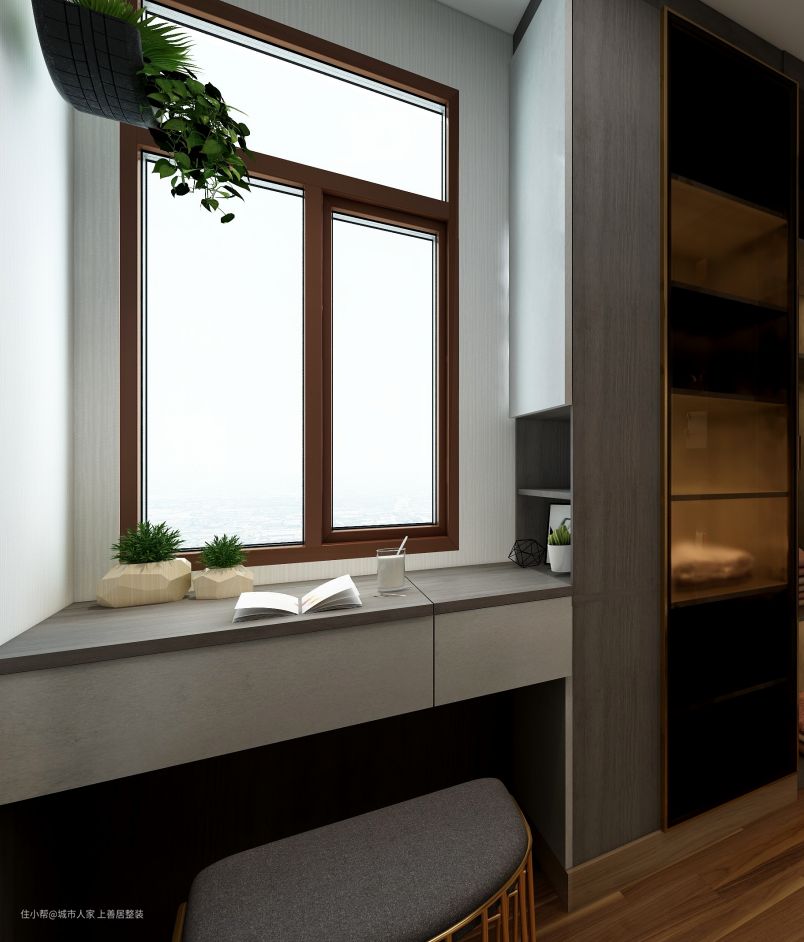 全屋定制的好处在于,一切皆有可能~在你觉得可有可无的小角落,设计师一个灵感就能让它变得出奇的可爱!采光效果差强人意的邻窗一隅,定制书桌,配套的艺术凳,搭配一株绿植,生机勃勃,办公或者学习也变得不再枯燥~