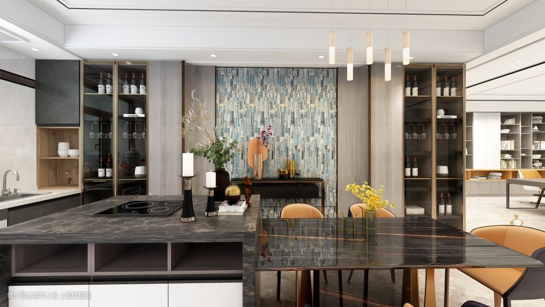 本案业主两人率真随性,追求简单洒脱却不失格调的生活。房子空间比较大,客餐厅一体的设计,使得整体宽敞明亮,嵌入式的酒格和软装搭配更是彰显精致。多功能的餐桌方便好友聚会,三两知己,一盏烛台,开瓶红酒,觥筹交错,好不惬意~