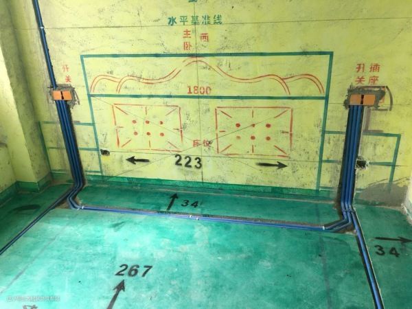 墙面走线必须垂直。所以,水管走墙不管是热水管还是冷水管都是走垂直的;电线走墙不管是开关,还是插座线,弱电线,都必须走垂直线。