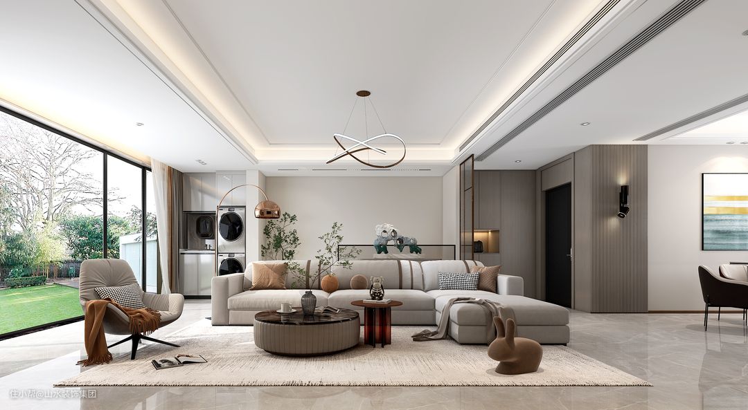 秋日阳光穿透窗户,温暖洒满一室。厨房里忙碌的身影,孩子们打打闹闹,沙发上永不落空的拥抱,塞满了食物关不上门的冰箱,一家人围着客厅的笑声调高了音量,周末的时光是轻松而惬意的。这款300㎡的地复式住宅,依据居者的需求选择了现代风格进行整体布局,影音室、休闲室一应俱全,生活、娱乐、休闲等各种需求均能满足。