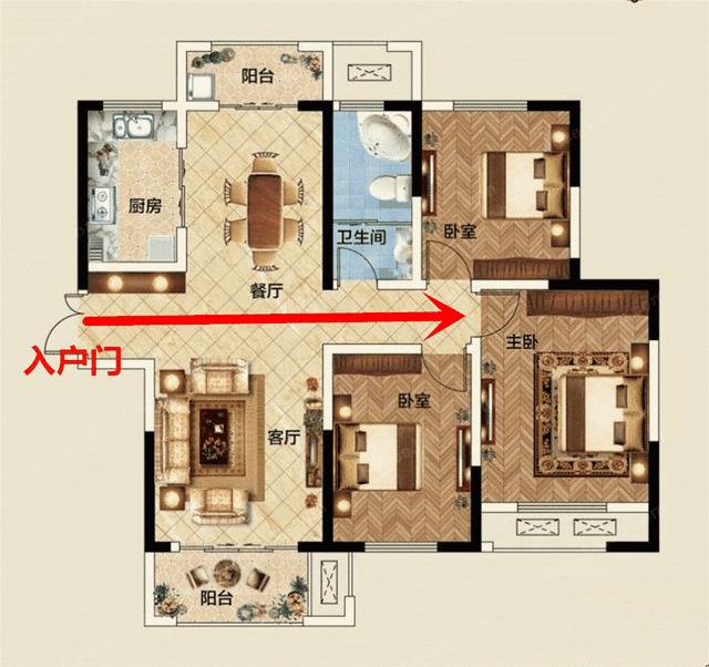 从这三种户型中可以发现,这种无玄关的户型,业主面临着进门见厅、甚至是入户门正对着卧室、卫生间的尴尬,隐私非常差。