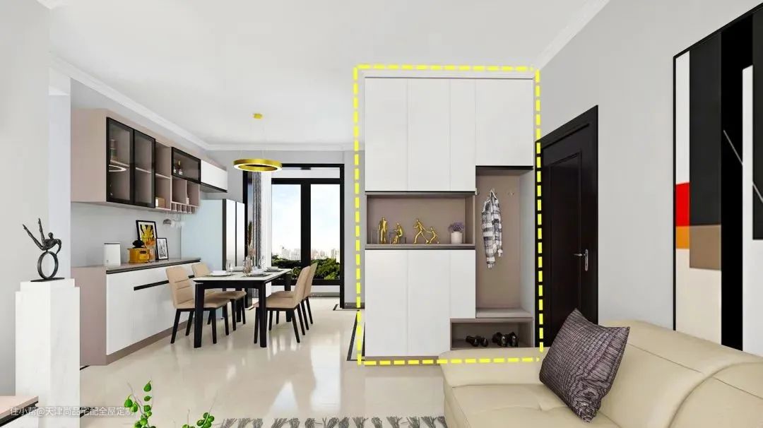 就现在来说很多的户型都是无玄关的设计,小户型更甚,进门口大多数都是以方形空间为主,换鞋、收纳、隐私等需求无法实现。