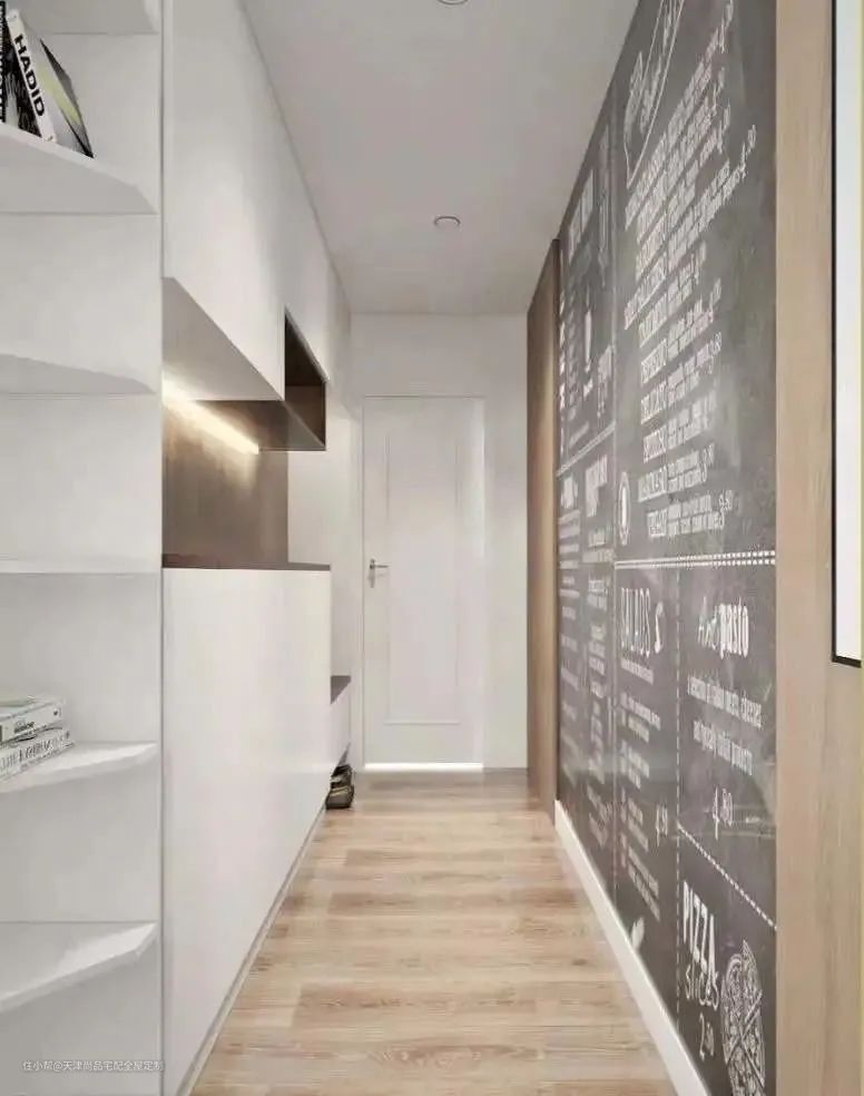 ▲ 把长走廊改造成收纳空间,最直接的方法就是打柜子,为了避免过道拥挤,可以设计薄柜或采用内嵌式设计,充分利用墙面空间。