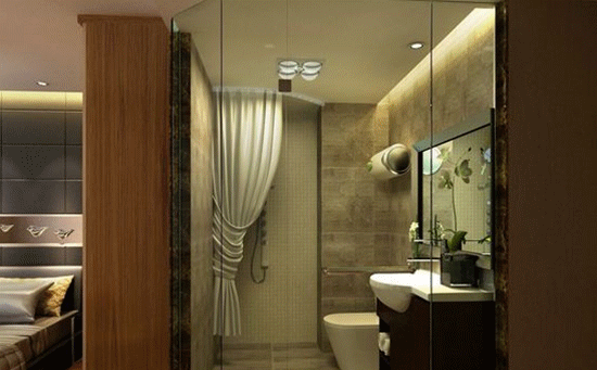 ▲ 主卧室的卫生间面向床,如果房间足够宽敞,可以设计L型或U型衣帽间,巧妙地解决这个问题。
