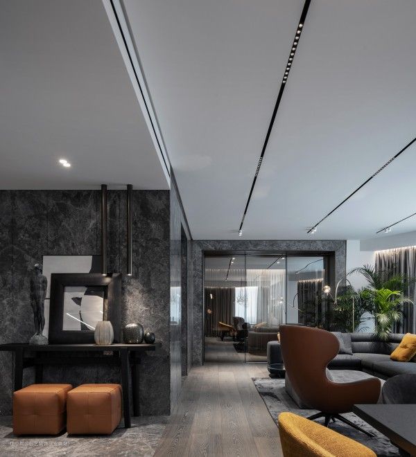 简单来说,直线吊顶就是在天花的四周做了一个方形的吊顶框架,通过这种吊顶造型,搭配内嵌的筒灯或射灯,营造出精致大方的氛围感。