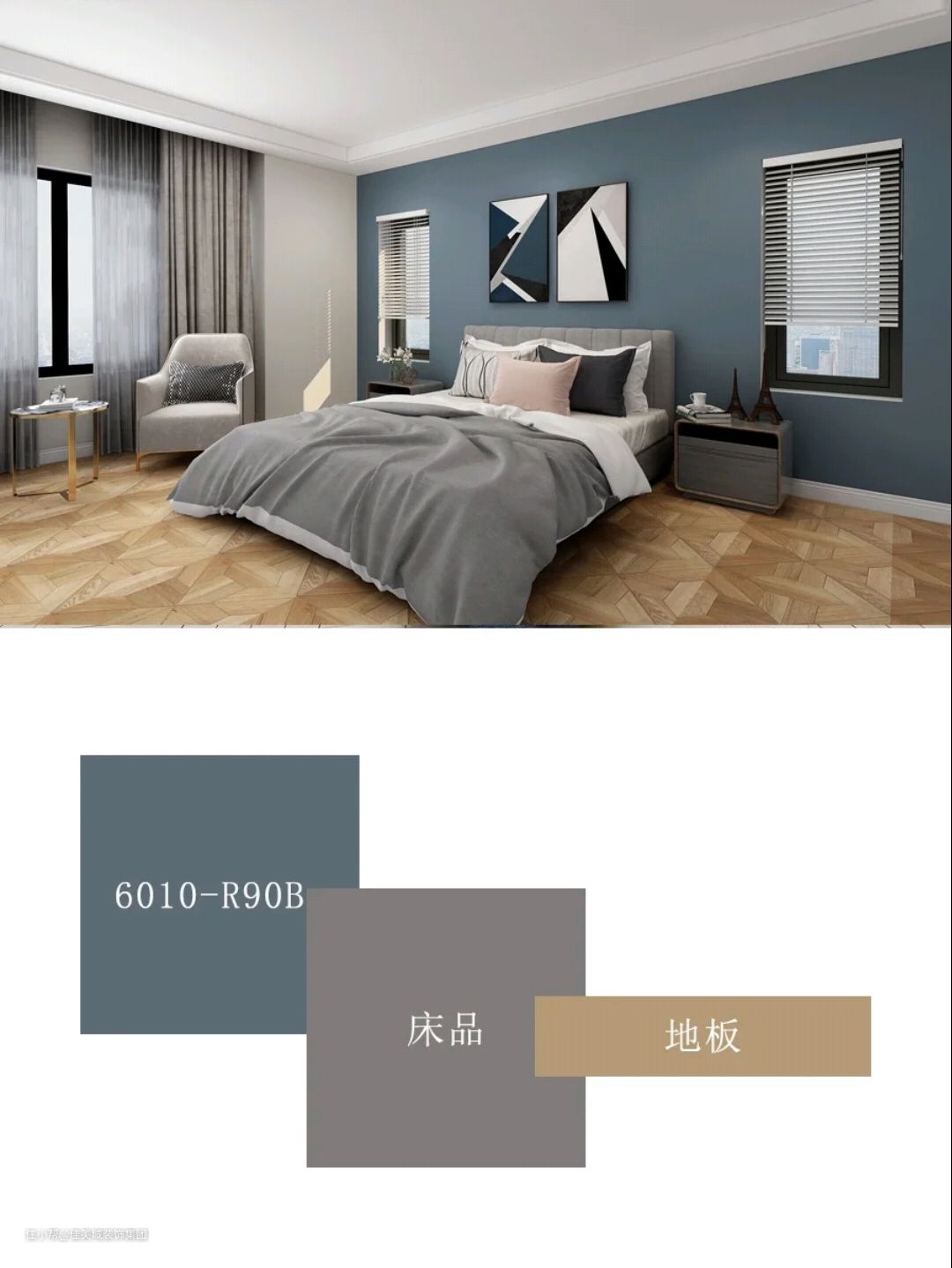 深蓝的外表仿佛披上了一层纱,因为灰度的融合,让蓝色愈加温柔,搭配灰色系软装充满高级感。