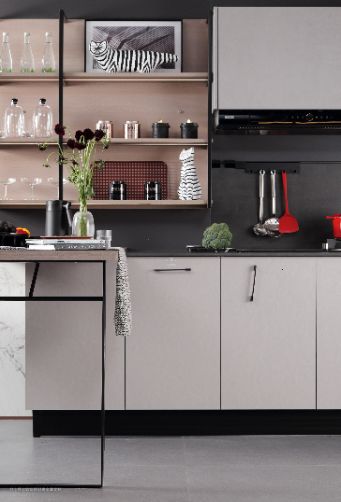 橱柜地柜高度以符合人的操作重心为宜,一般为人体身高/2+5cm,炒菜不抬手,切菜不弯腰,直立操作,一扫腰酸背痛之累。橱柜吊柜高度则以伸手方便拿取物品为宜,而深度需适配使用者身高和地柜深度,约在30~45cm之间,一解碰头踮脚之忧。