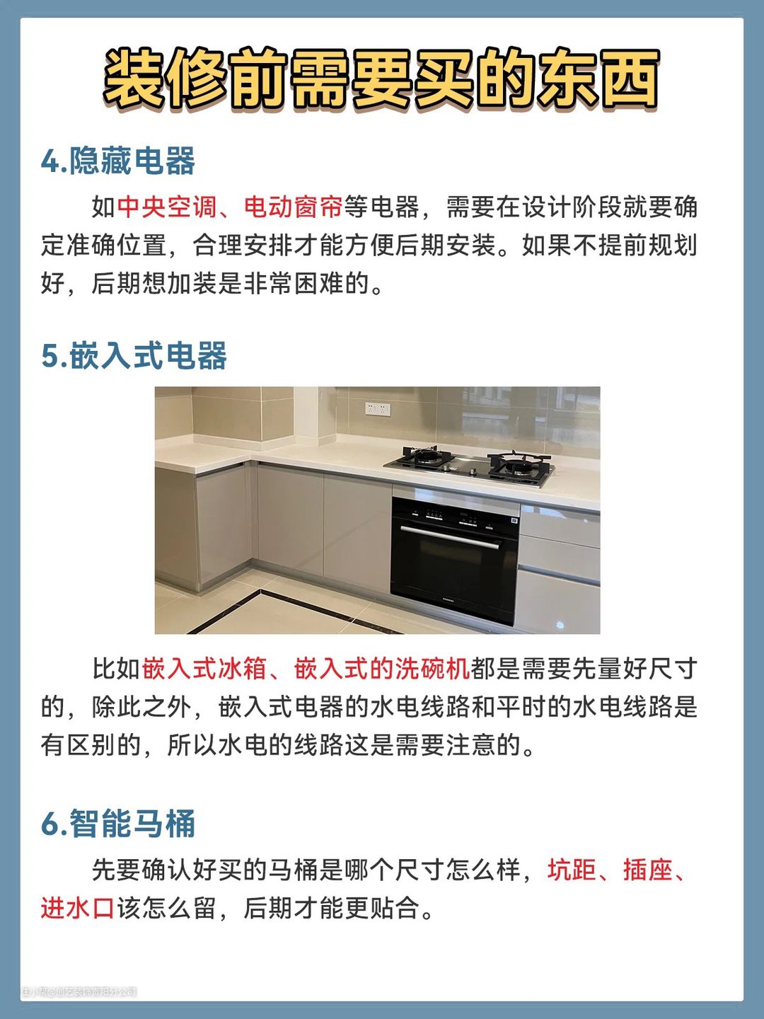 哪些东西需要提前购买 | 装修必看创艺装饰贵阳分公司2021-11-19以下东西,如果你不提前购买,后期你有可能装不上。装修必须环环相扣,临时购买是不合适的。以下这些东西,是需要提前购买的。1.门2.橱柜3.无主灯4.隐藏电器5.嵌入式电器6.智能马桶··· ···