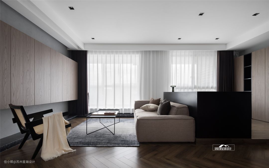 3.开放式格局 对一些小户型来说,打造一个开放的公共区域能够扩大视野,让空间看起来更宽敞通透,这种情况下,就可以考虑结合沙发不靠墙的设计方式。