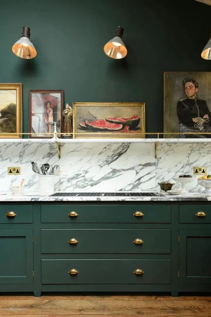 墙面和家具颜色搭配好,剩下的就是一些自带光环的饰品来做点缀了。比如黄铜色,与深色搭配,低饱和的精致。