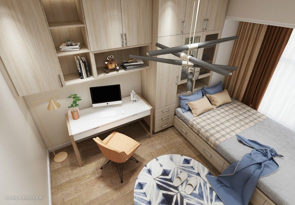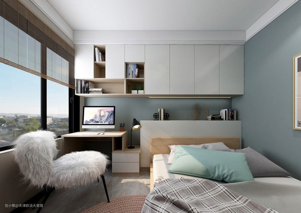 ▲这个户型也是个小卧室,床上方是整整两排搁板,可以放业主最爱的书籍和工艺品,床的下方和旁边也能储物。