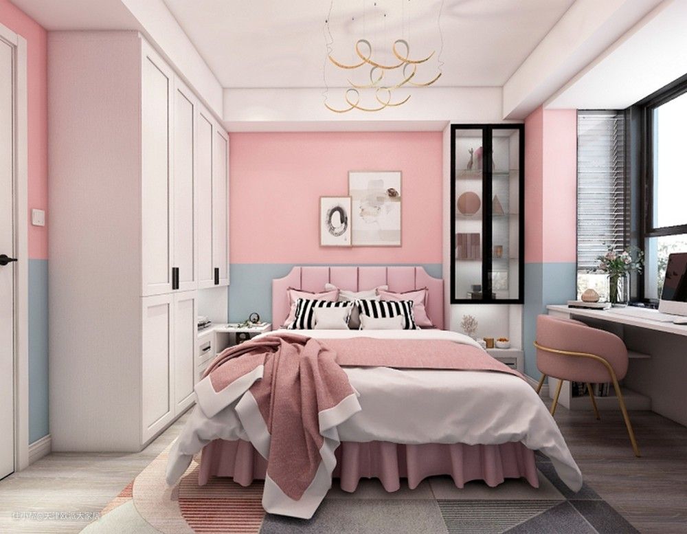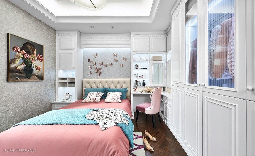 ▲为了给女儿装公主房,业主林先生可谓煞费苦心,从灯具到大床都是精挑细选的,还找咱们做了定制式设计,大床两边贴合户型分别做组合式储物柜,并在伸手可及的高度设置床头收纳区。柜内有灯带,随手一按,照亮夜晚,温暖心房。
