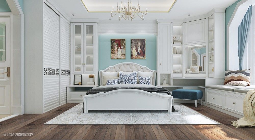 ▲喜欢配套的小伙伴,还可以打环绕式柜体,将床头柜和衣柜连在一块,整个空间统一材质和颜色,高级感拉满,谁看了都夸你家有范!