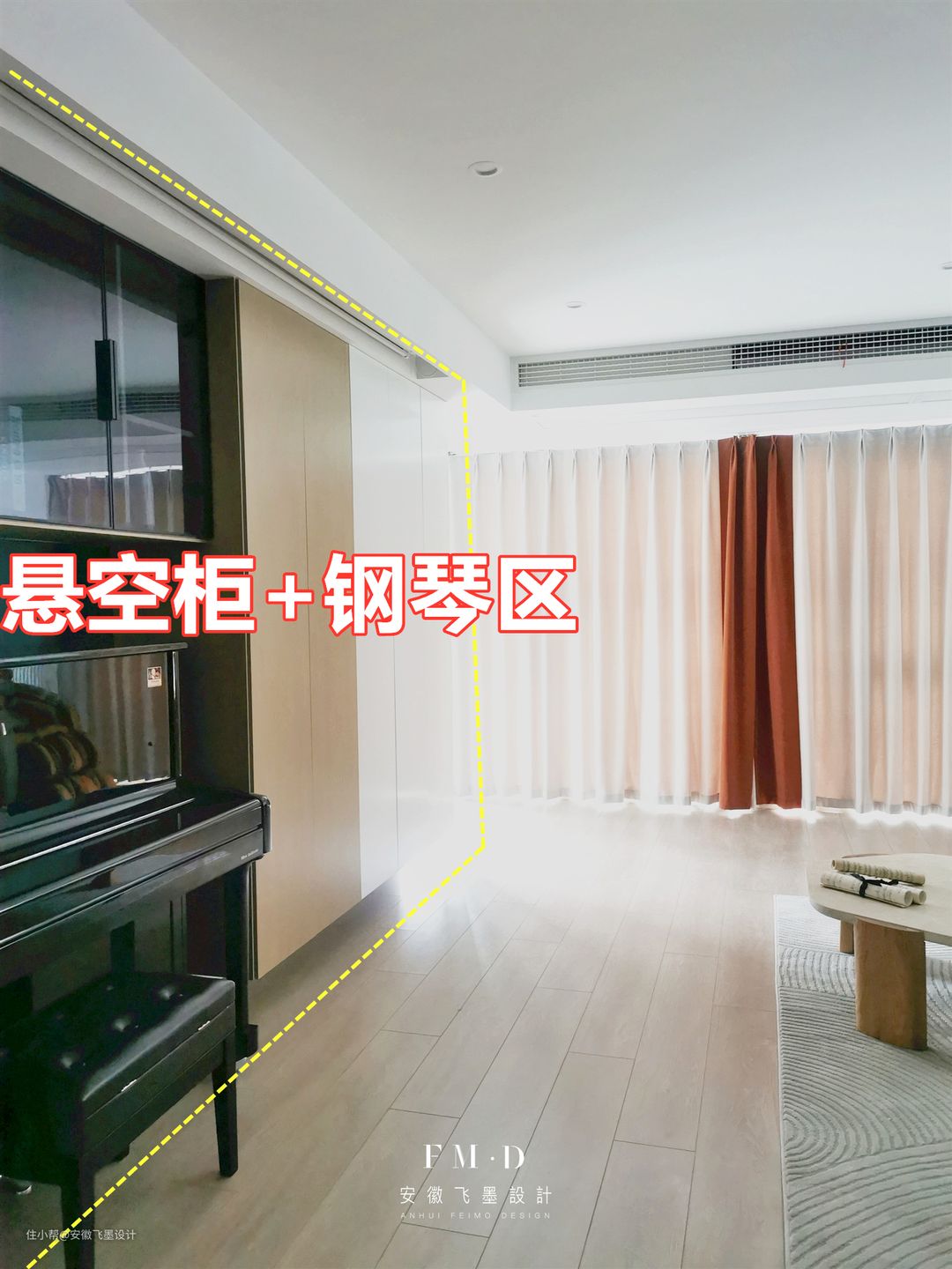 电视墙看过千千万万种,合肥这位业主想法别出心裁,将近3.8m长的电视墙一分为二,一半悬空柜,一半钢琴区,二合一组成电视墙,让电视墙至少发挥3重功能,是一般电视墙无法媲美的!