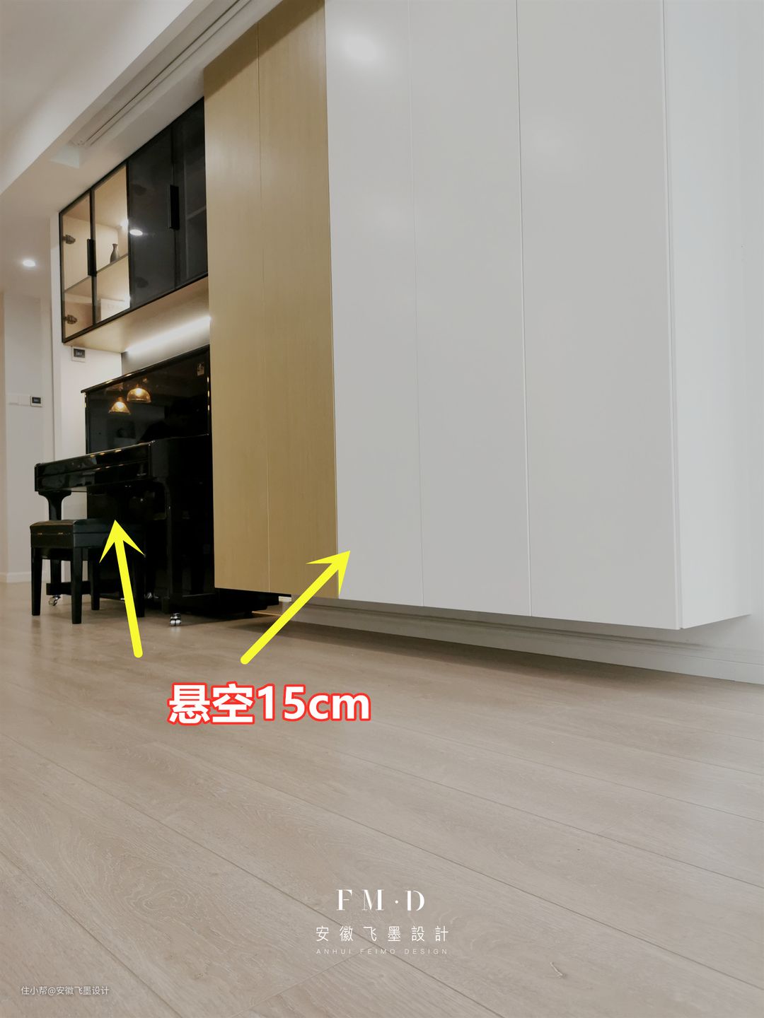 钢琴区+悬空柜组合的电视墙,拥有双柜,足足能给家里带来10㎡收纳地!