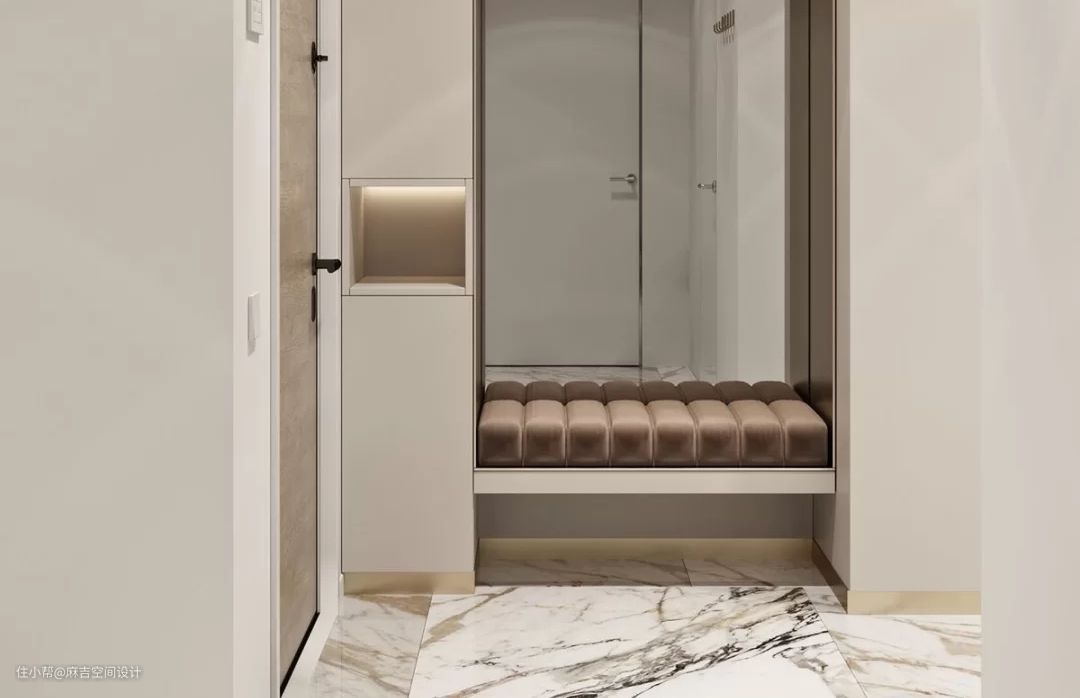 玄关鞋柜:底部有空出放鞋子的区域可以设置灯带,方便看清楚鞋子。中部有置物层也可以加装灯带。