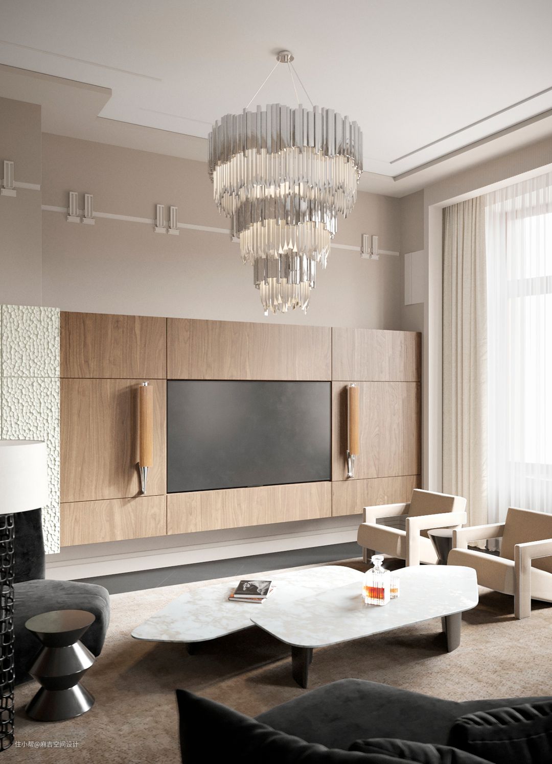 客厅的照明,⼀般3000K就能达到一般人对客厅亮度的需求了,可以营造暖色温馨的效果,也可以用4000K照明空间