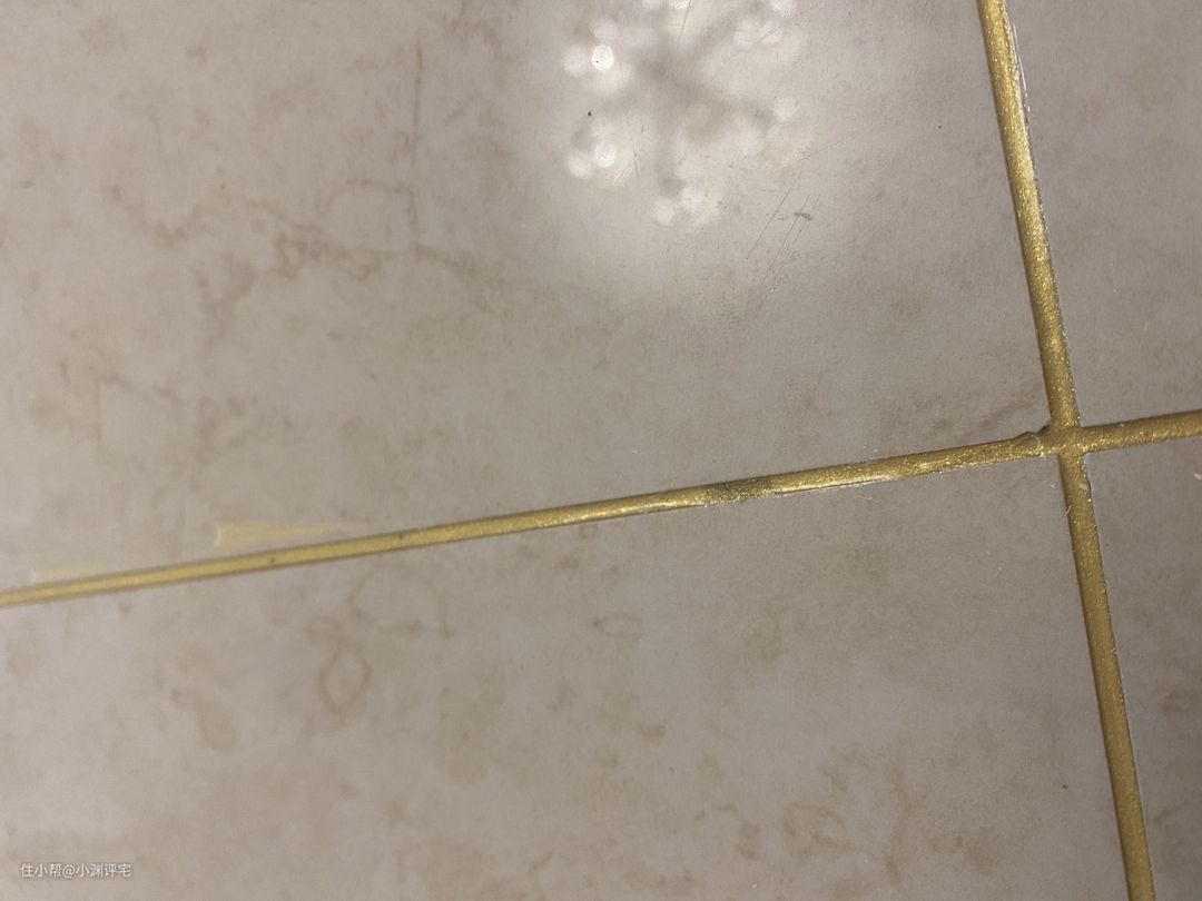 类似于这样,美缝剂里卡着一块黑点的情况非常多,而且一般都集中在地面上。
