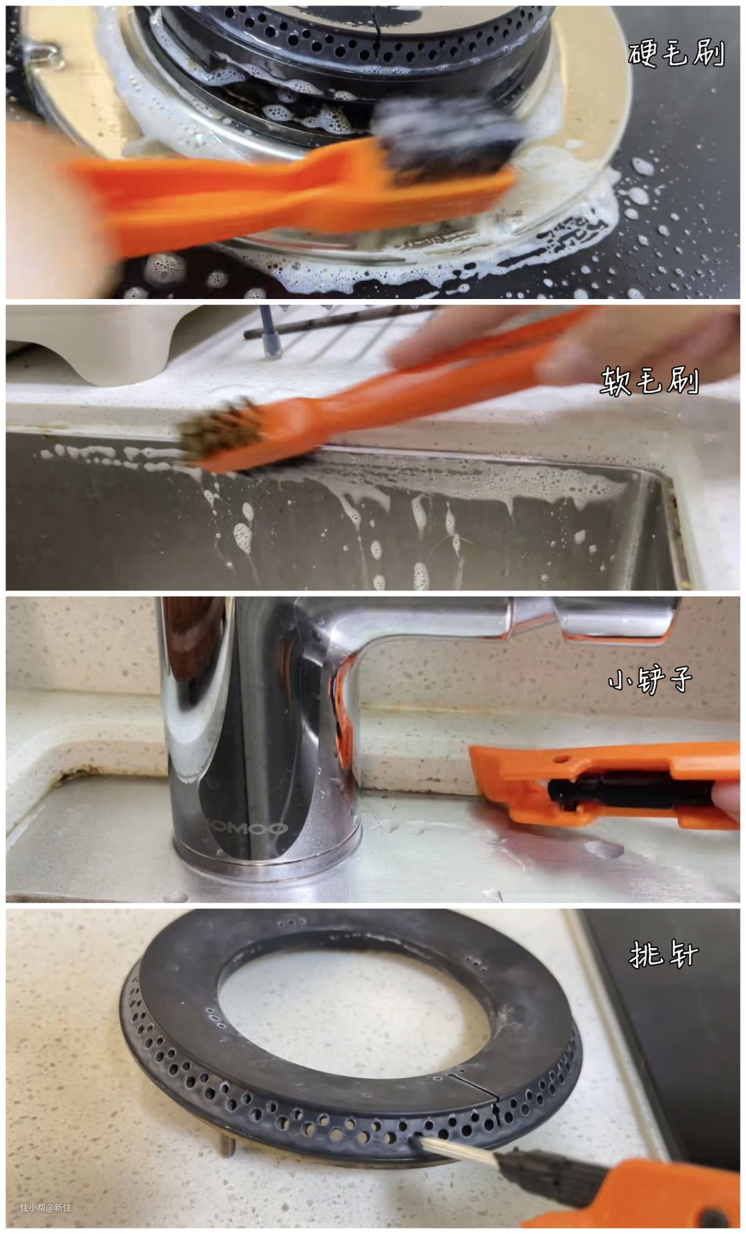 灶台的沟沟缝缝比较多,没有专门的清洁工具的话,还真很难达到彻底清洁的效果。
