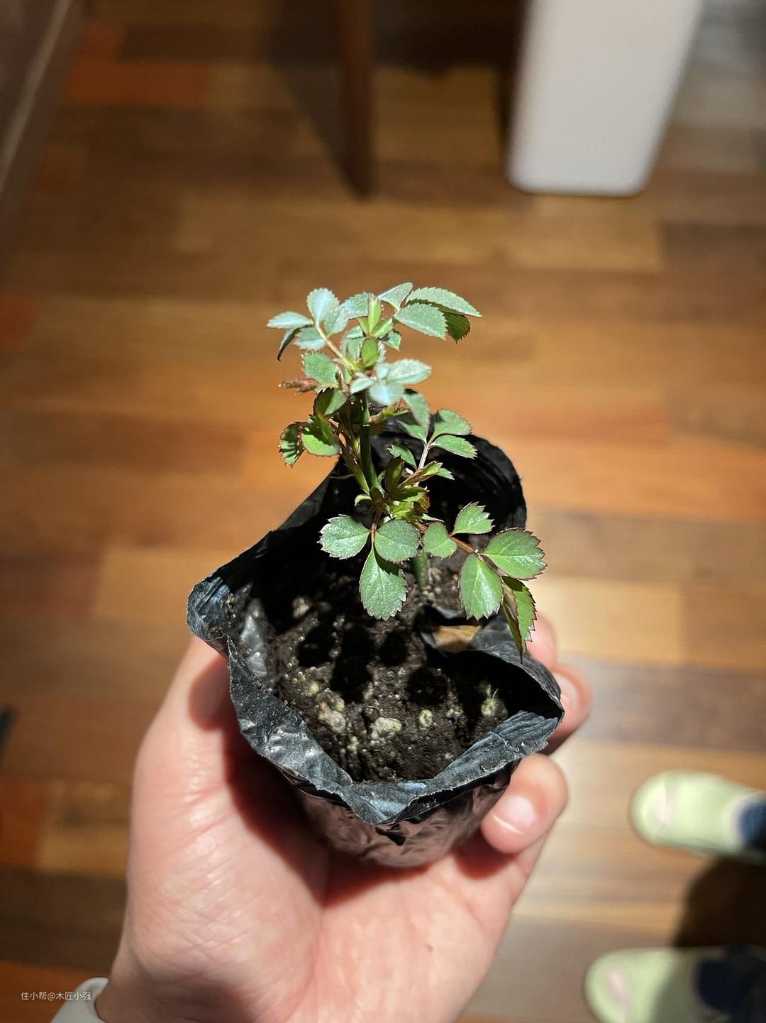有不少人吐槽,说我的月季都是新买的,月季在室内养不好。我晒下它小时候啊,这春节前后到家一个月的样子,彼时没有像样的花盆,直接种在了一个自热火锅的塑料盆里
