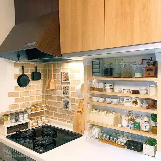 这些后期加入的墙面收纳,都能有效的提高厨房的储物能力。