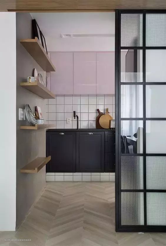 相比之下,透光不透影的压花玻璃门则更为合适,能给未及时收拾厨房的宝宝们一个偷懒时间。压花玻璃之前有讲过呦→你家看上去好高级,竟然是因为这一简单的元素。