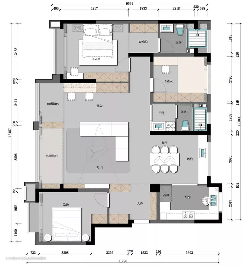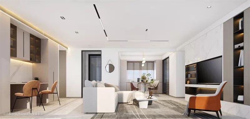 案例整体流淌着简约、时尚、现代之感,中间采用了很多对称设计,起到的家装效果超过了设计师的预期。