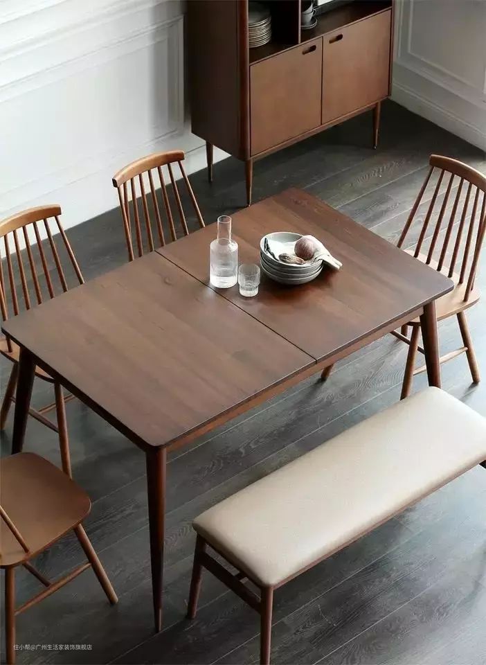 其实如果我们家里的空间实在不够的话,或者说需要大餐桌的时间但是又用的不多的情况下,我们可以选择可折叠的餐桌。