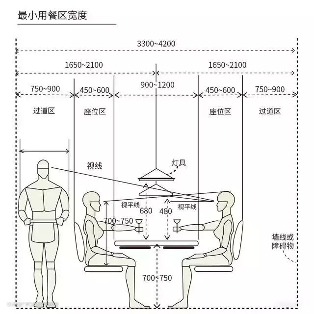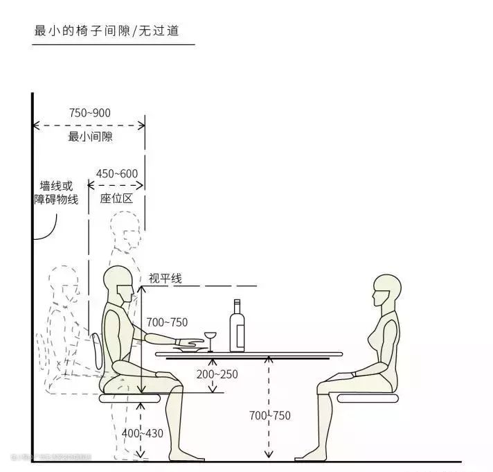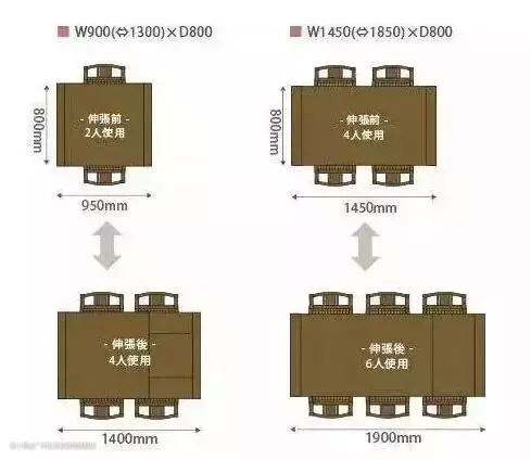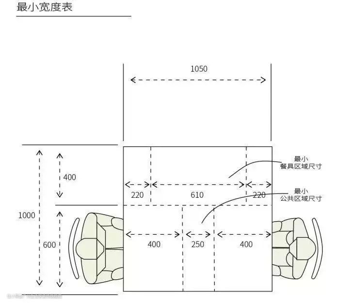 再往上的六人餐桌取1800*900~1050mm,宽度较800mm增加的原因,是家具美观比例的原因,而非人体学。