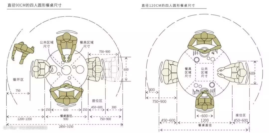 通常为中小型住宅,如果使用直径为1200mm的餐桌,则会觉得过大,可以选择直径大约为1100mm的圆桌。