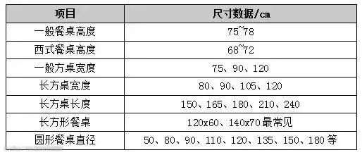 标准餐桌尺寸