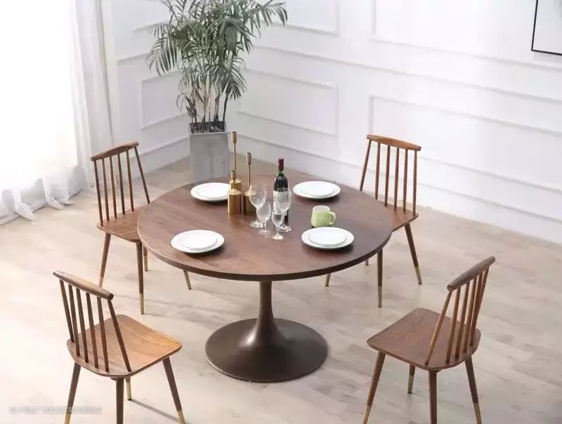 ▼面积比较大的餐厅或者偏正方形的餐厅可以在选择上采用圆桌,圆弧形的边缘不会限制使用者的位置,相对来说圆形的餐桌比方形的餐桌能坐下的人更多,而且从其含义来讲,圆形的餐桌弧度较圆润温和,有团圆欢聚的象征,也比较能营造温馨的就餐氛围。