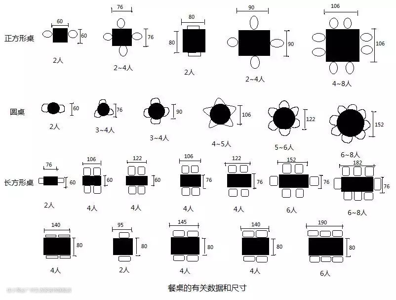 我们生活中最常见的就是方桌和圆桌了。椭圆形的餐桌是最近几年比较流行的,但是椭圆形的餐桌尺寸基本可以参考长方形餐桌的尺寸了,具体的大小还是得根据实际,通常会因为圆弧桌边而产生一些差异。