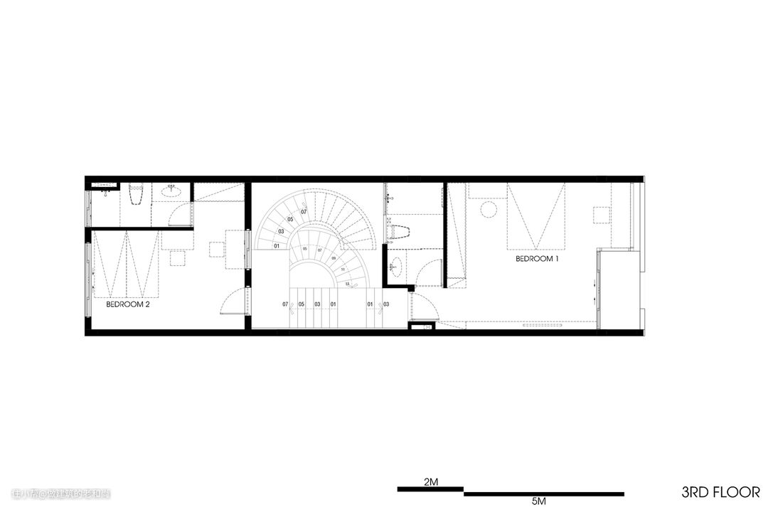 中间位置的漏斗式采光井,同样也被运用在了建筑临街一侧的立面上,往内逐渐退让的立面,让建筑与城市空间的关系变得更加缓和,而不是生硬的交接。像这种典型的城市住宅,整个设计过程就像是解一道数学题一样,通过分析痛点,解决问题产生合理的方案,最终打造出一个舒适惬意的家居空间,这对于我们很多有类似地块的待建住宅,有着极其强的借鉴意义。