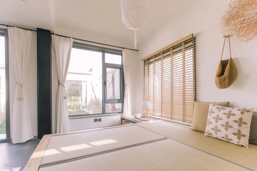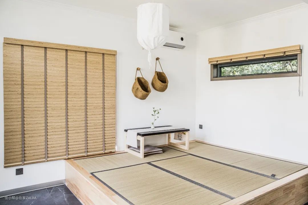 叁舍有两间卧室,其中一个房间做了一个2.8m*2.3m的榻榻米,白天可以休闲喝茶,如果有朋友在这里过夜,也可以供一家四口休息使用。
