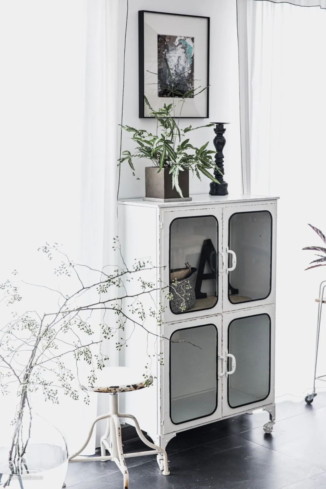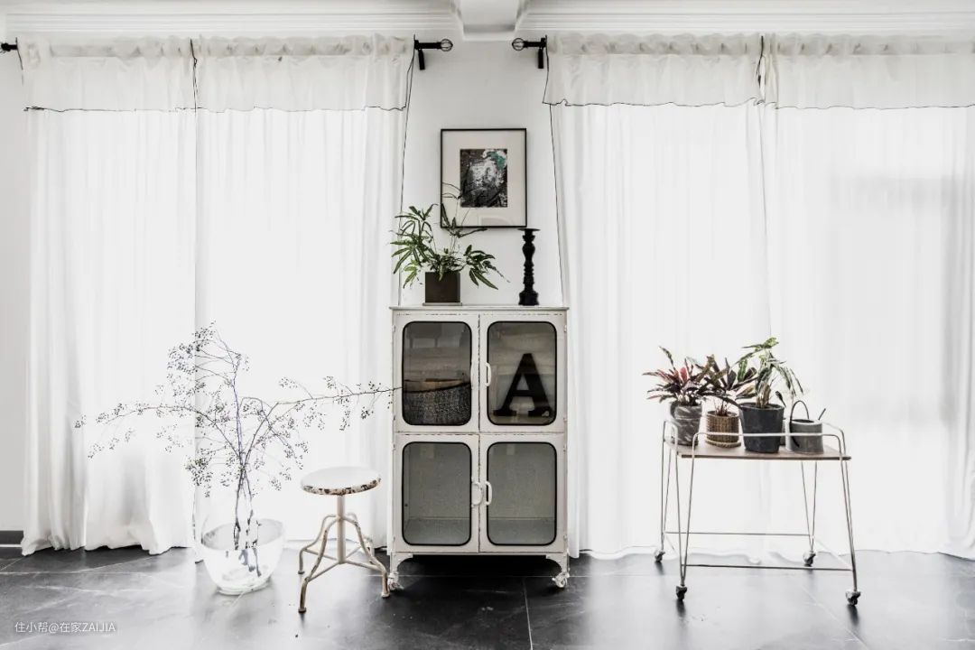 窗边的收纳柜和小圆凳,都是设计师款,有做旧的感觉,质感很好,颜色和整体空间都很搭,既可以构成一道小景,还能起到补充餐边柜的作用。