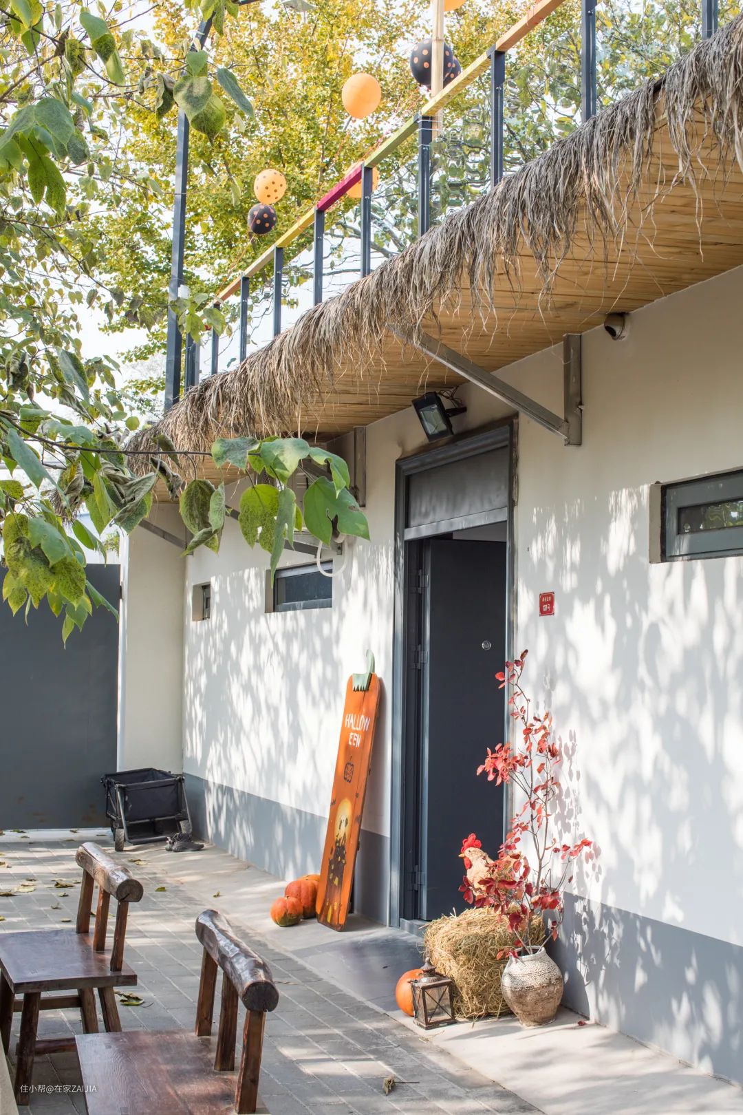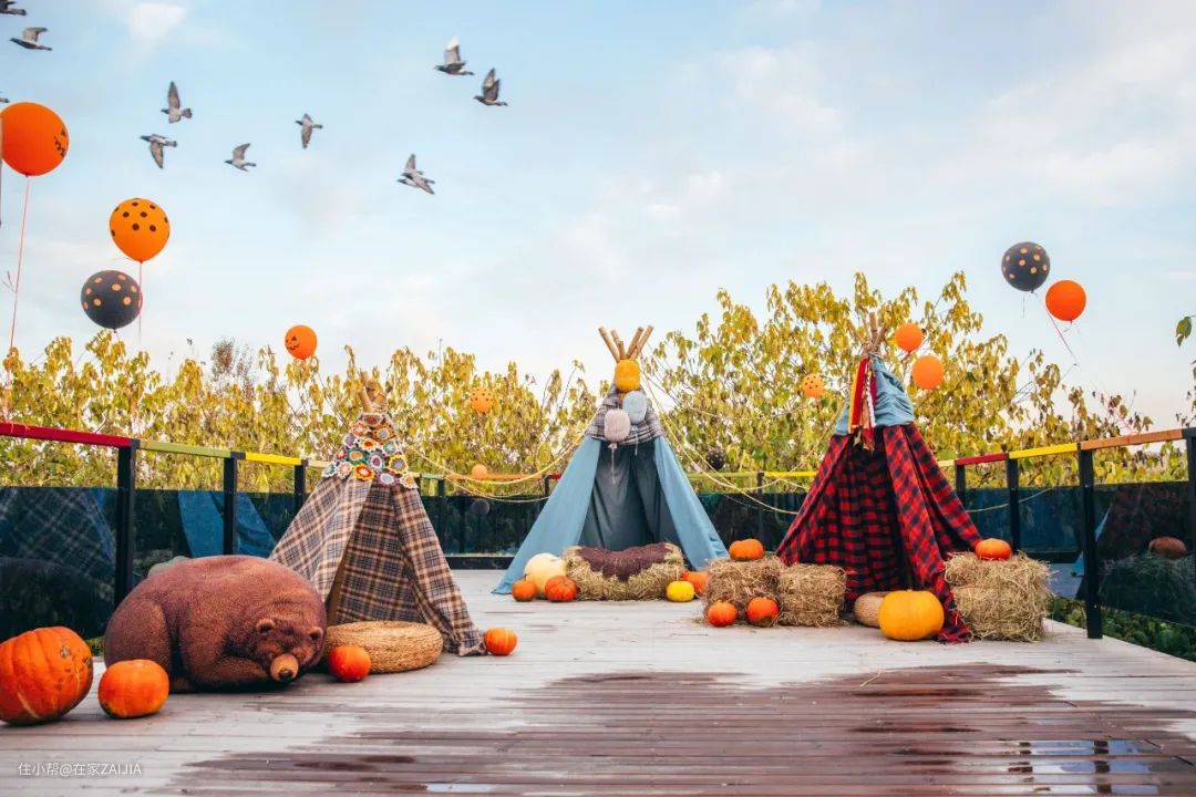 万圣节的时候,我们在露台做了南瓜灯的沙龙,自己动手搭建了场景,恰巧隔壁养了很多赛鸽,不时有鸽子飞过。