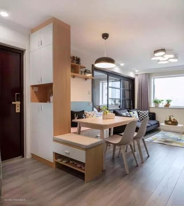 卡座用在餐厅可谓是最常见的做法,在一些家居空间当中,使用了卡座+隔断的组合,不仅可以用来区分餐厅与门厅的不同功能区域,还可以最大程度地让视野开阔,尤其适合于追求小资情调、不甘于常规设计的家庭。