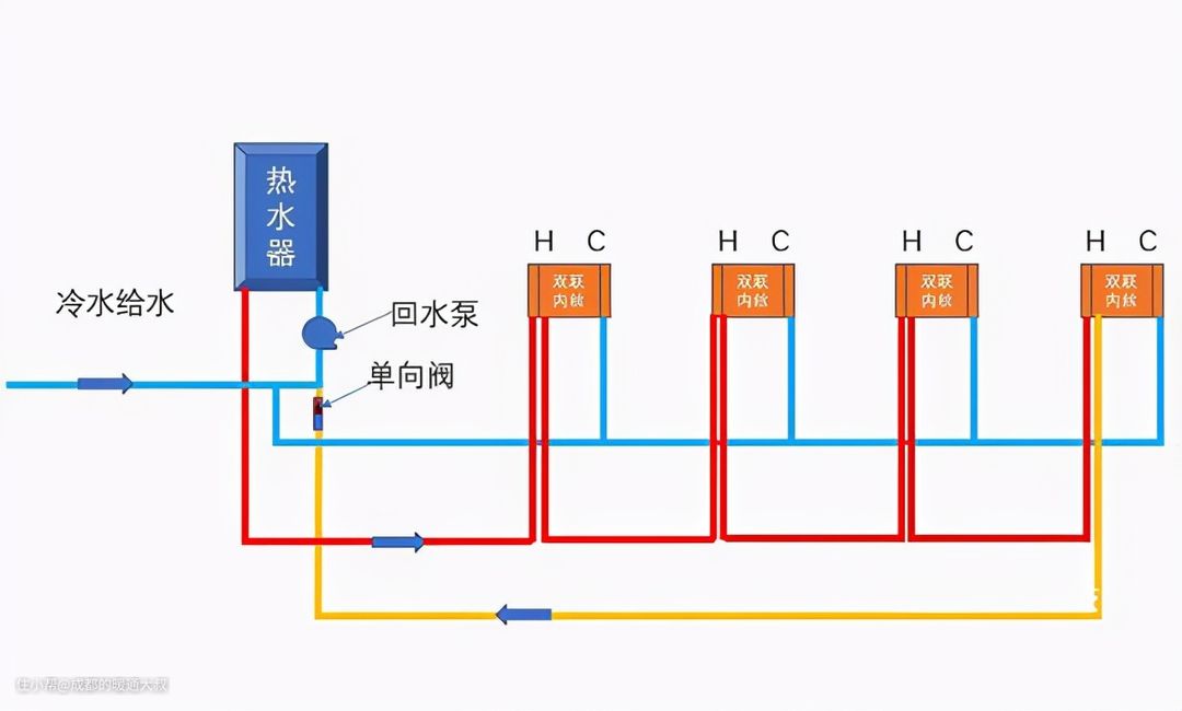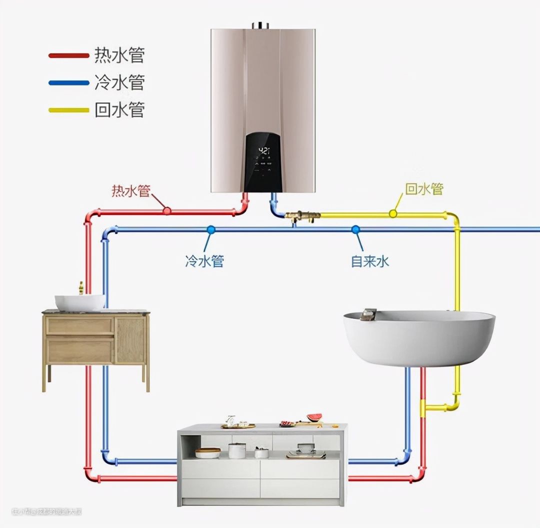现在的热水器有一种功能是零冷水,它的含义是指室内各个热水用水点的热水时间很短,几乎达到了没有冷水,不用等待的情况,虽然这样的叫法有点夸张,但是它确实减少了用户等待热水的时间,节约了水资源。要达到这样的效果,需要有回水管,那这根回水管该如何安装呢?