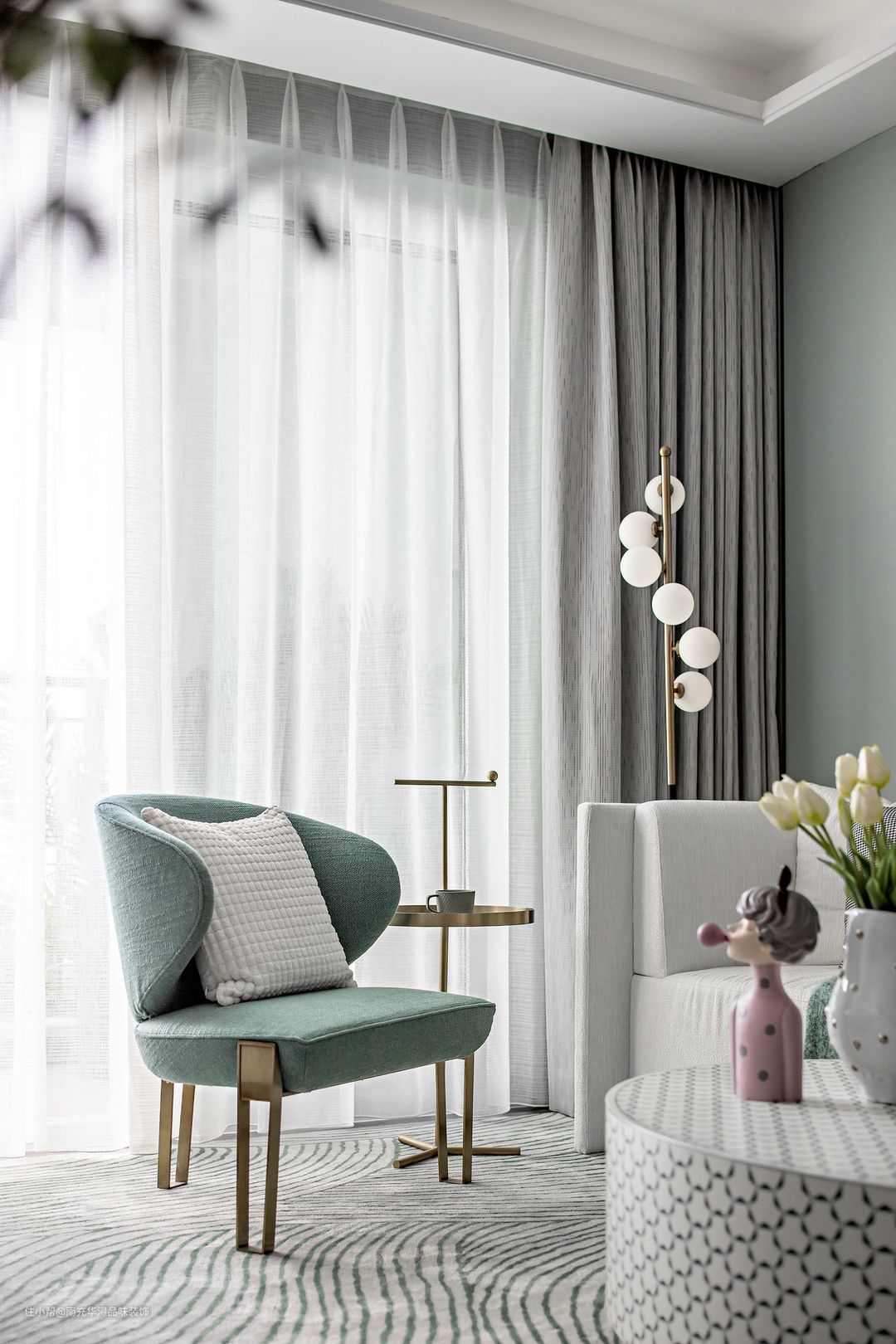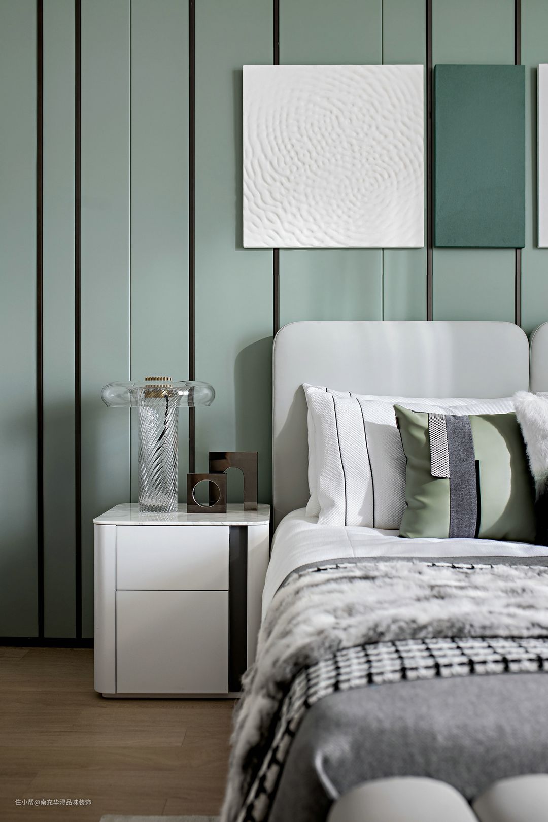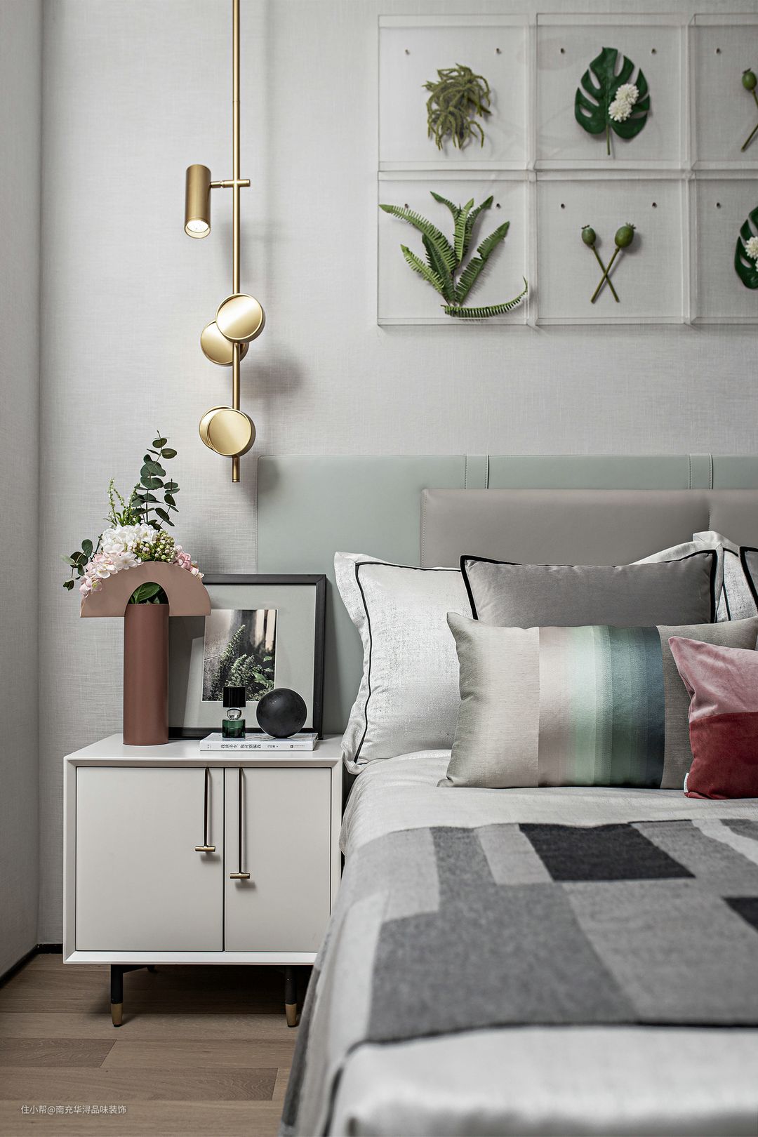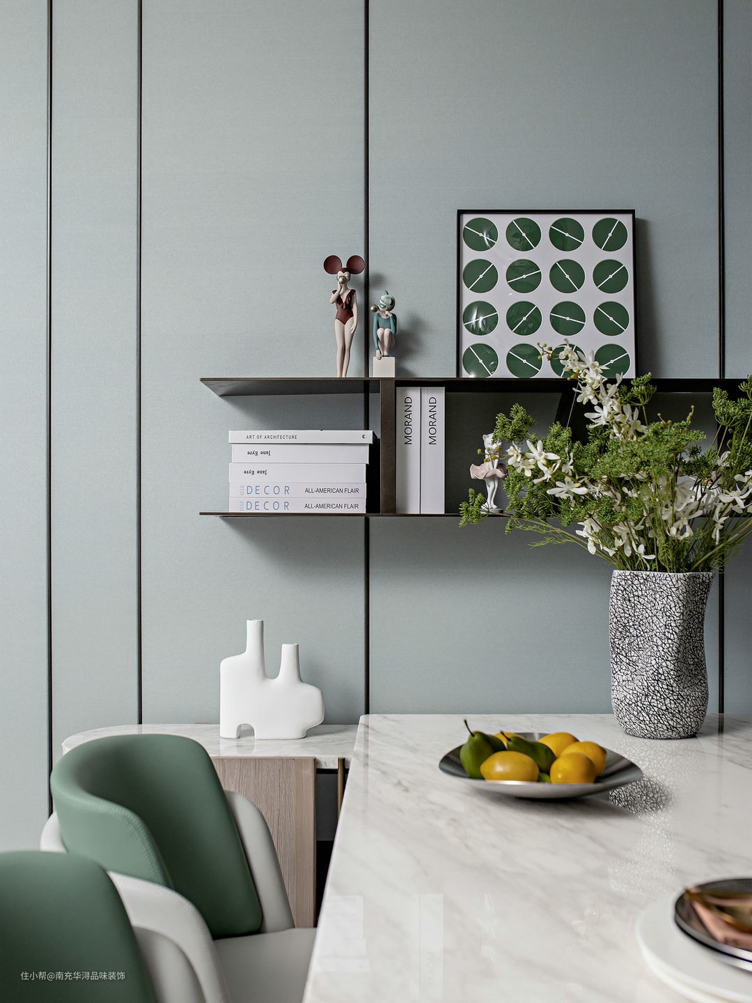 中性的浅灰色低饱和的融合绿色的存在,耐看温和的颜色营造出了宁静致远的生活氛围,这个搭配也使得空间内视觉效果更加开阔,空间层次感分明。