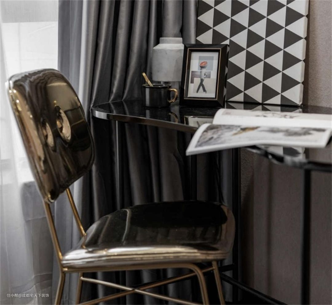 在客厅连接阳台的地方,安装了一个书桌,利落的线条设计,方方正正充分体现了黑色的高级感。