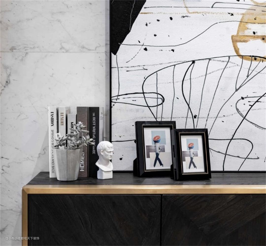 黑色的玄关柜采用金色作为点缀,一大幅富有艺术气息的黑色线条。装饰性非常强,增加了空间的造型设计感。