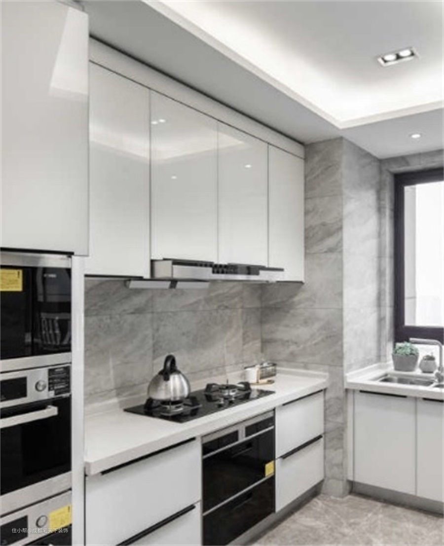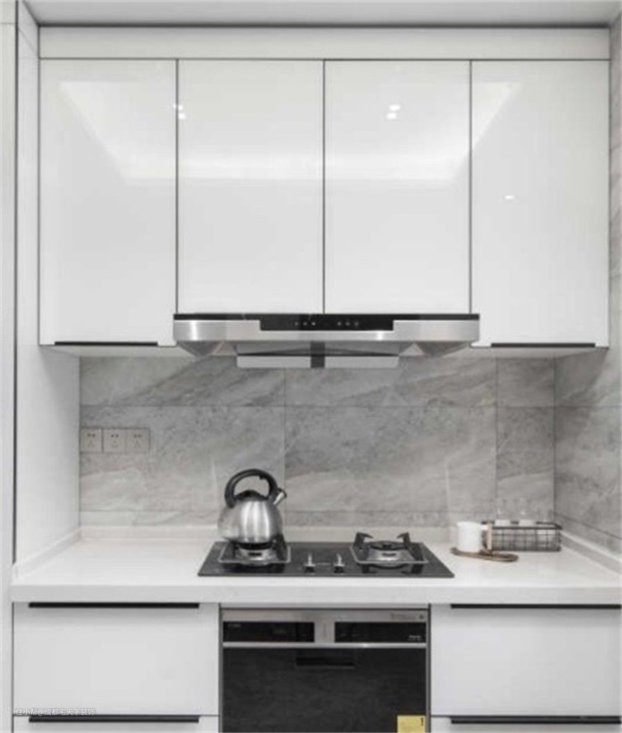 厨房采用了白色为主色调,镜面的玻璃材质,耐脏结实。