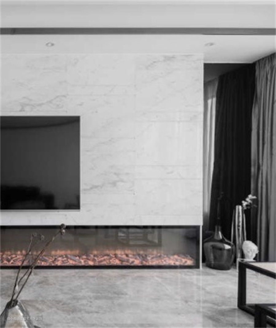 白色的大理石电视墙,没有更多的装饰,纯洁大气就是最好的诠释,下方的壁炉,给整体空间带来了一些温暖感。