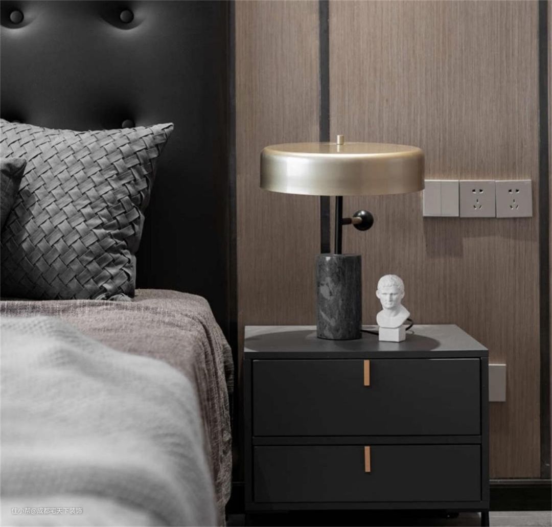 黑色的床头柜搭配上黑色的灯具,采用金色作为点缀。