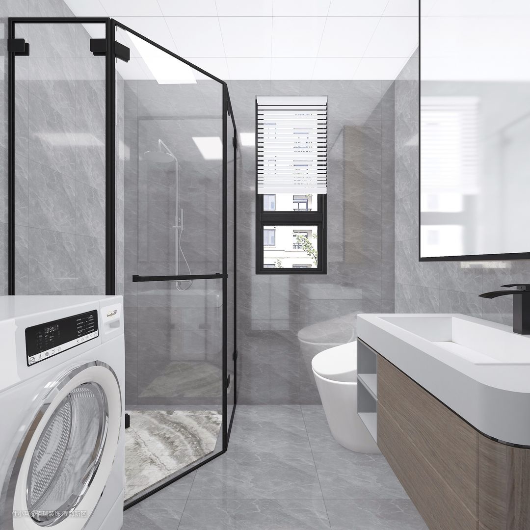 卫生间玻璃隔门做了一个干湿分离,洗衣机放在卫生间更方便。
