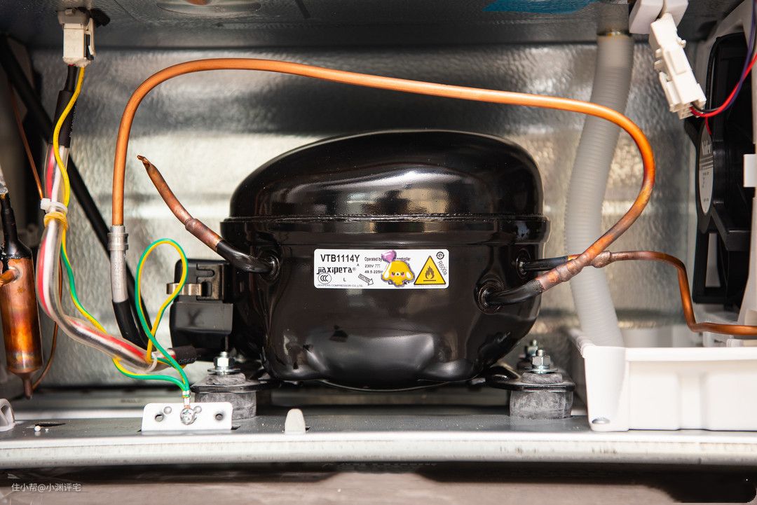 同时,冰箱的制冷,不仅仅是压缩机在工作。在冰箱的管道里还有很多制冷剂在循环,制冷剂会吸收冰箱内部的热量,并散热到冰箱外。
