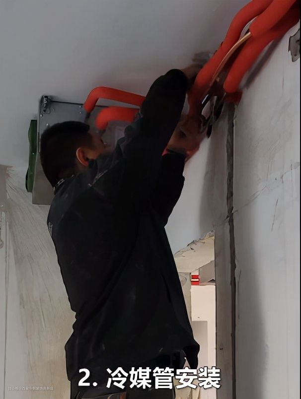 安装人员安装冷媒管的同时还要注意给管道内充入适量的氮气,并给冷媒管套上保护套。