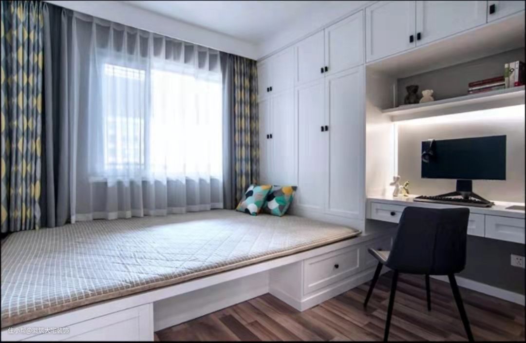 由于地台主要是用木材搭建的,内部为空,所以它的收纳力非常强大,一半可以设计侧边抽屉或内置隔断来储物(侧边抽屉对空间利用率更高)对于空间有限的家庭,扩大了储物能力。