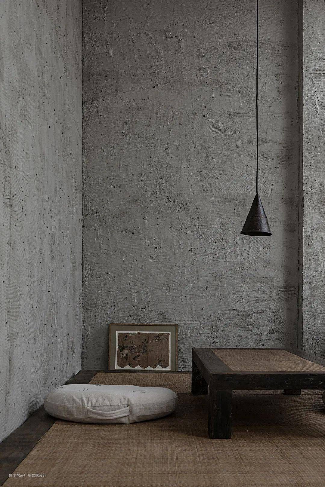 极简是指除了必要的家具装饰,没有任何一处多余的东西体现出来,侘寂风也通过此表达淡泊宁静的思想。这一点非常考验设计师对风格的把控能力,“少而精、简而有格调”是侘寂风的精髓,简化繁容易,繁化简难上加难。